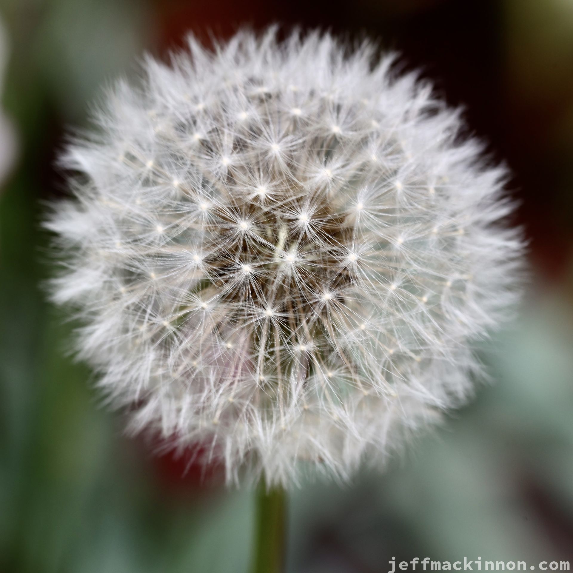 A perfect sphere of dandelion seeds. I took a picture of it just before the rain started
