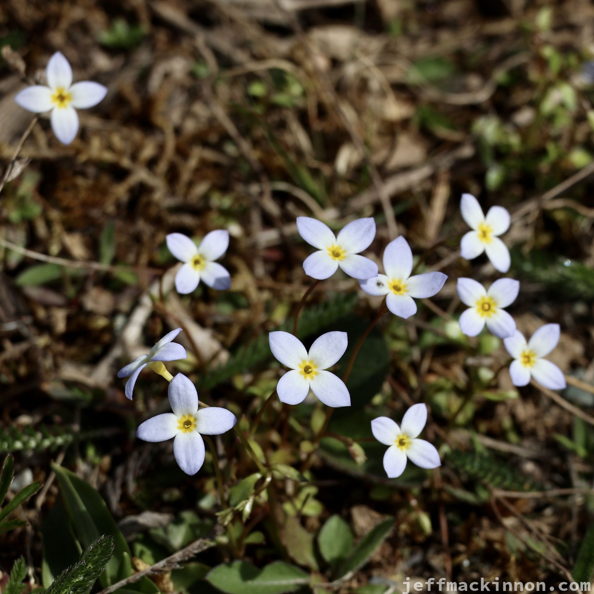 Walking on a trail in early spring before the leaves have started there is always pretty flowers on the ground.