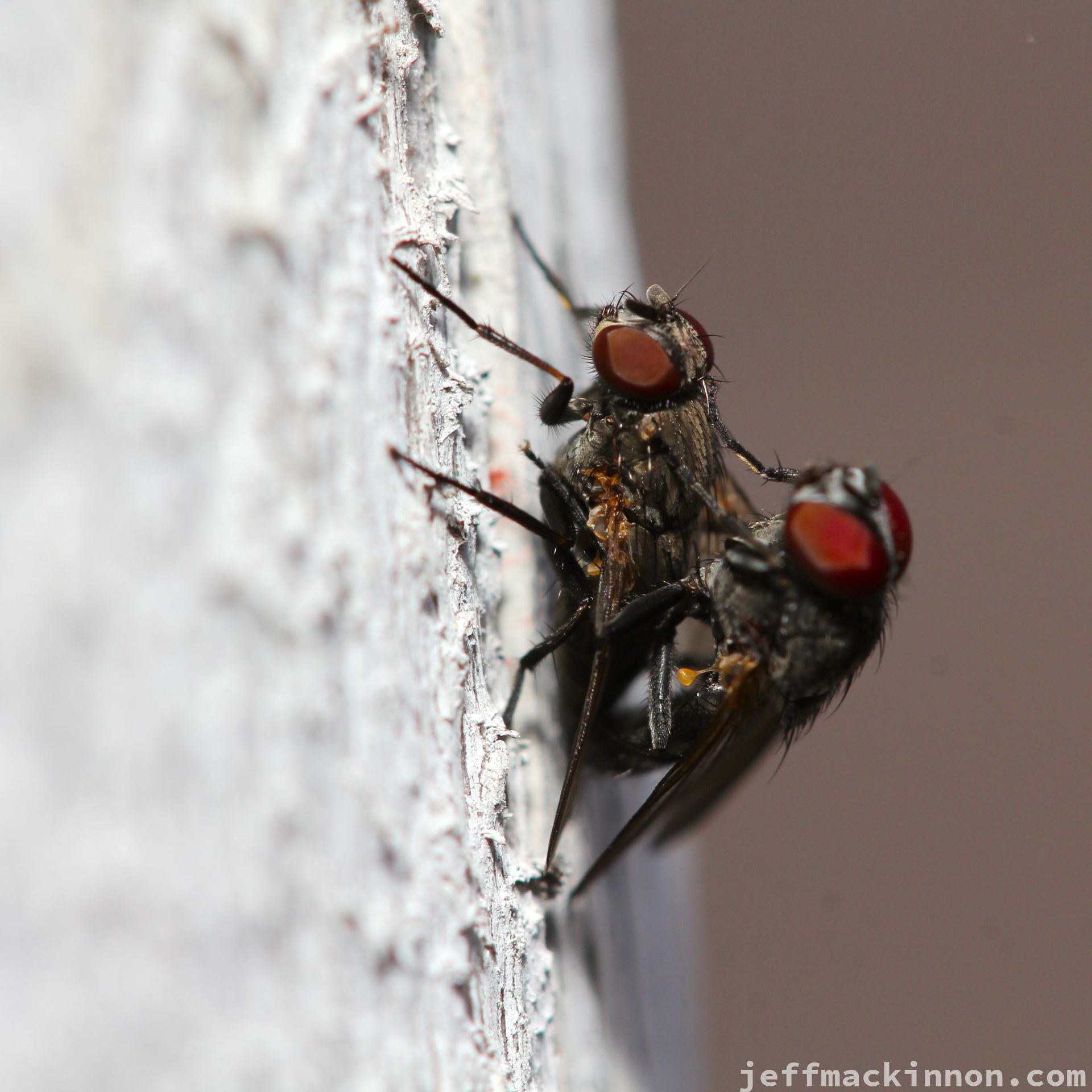 Wandering around the yard with my camera this weekend I came across these flies having a very good time.