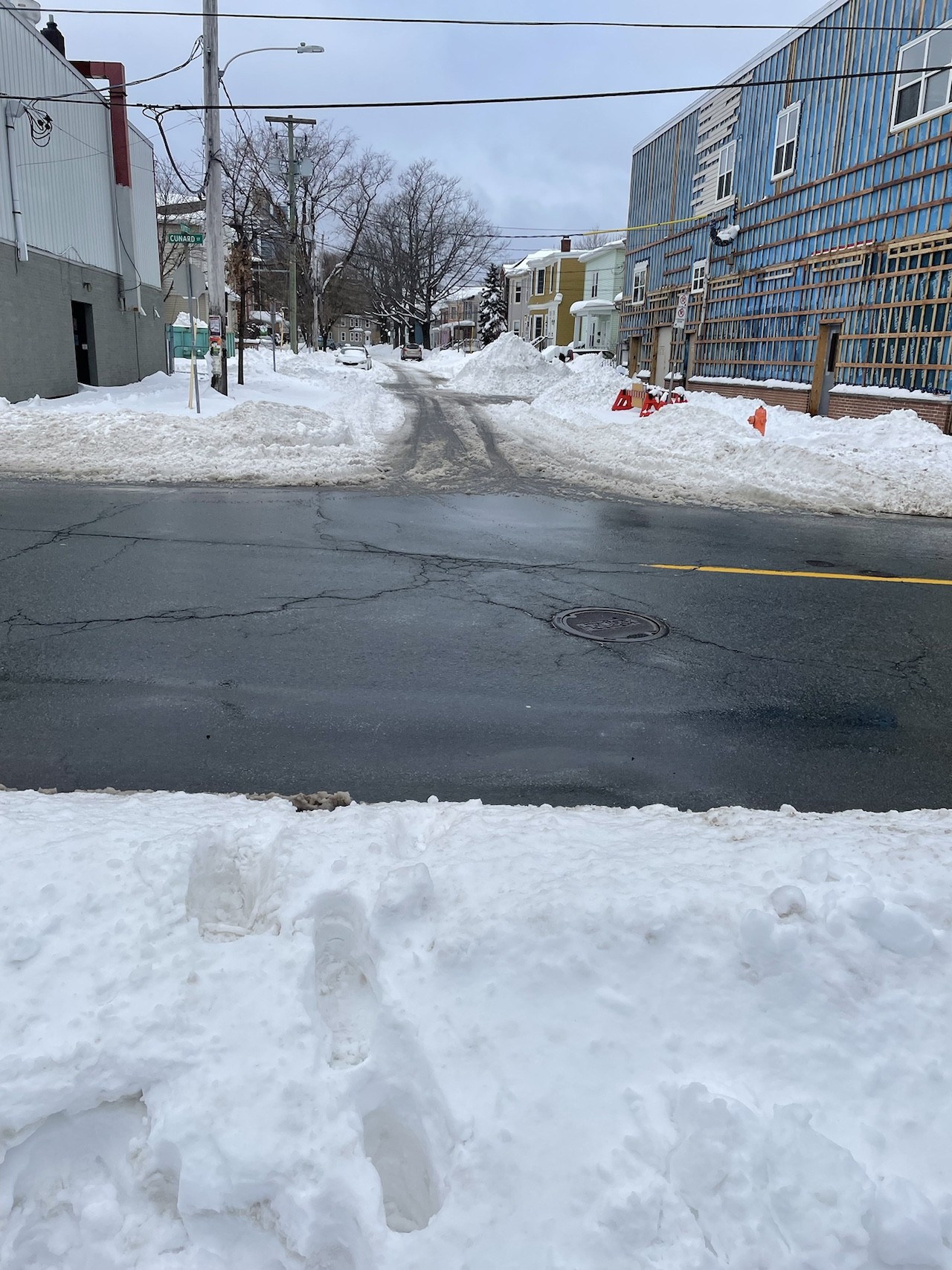 I had to go to the post office, and instead of driving I figured I would walk. I mean, the road was clear, and it was a mistake. While I was out I helped on lady over a massive puddle, lifted another's groceries over a "berm". She said that she will just take the road from here. When I was in the residential part of the walk I saw way more people than cars, and of the cars that I did see, every one was single occupied and 2 were plows going to the next parking lot.