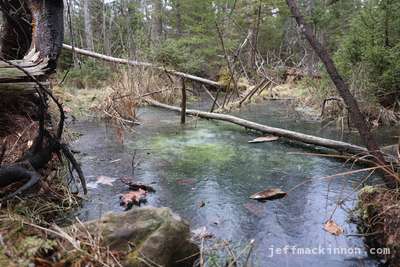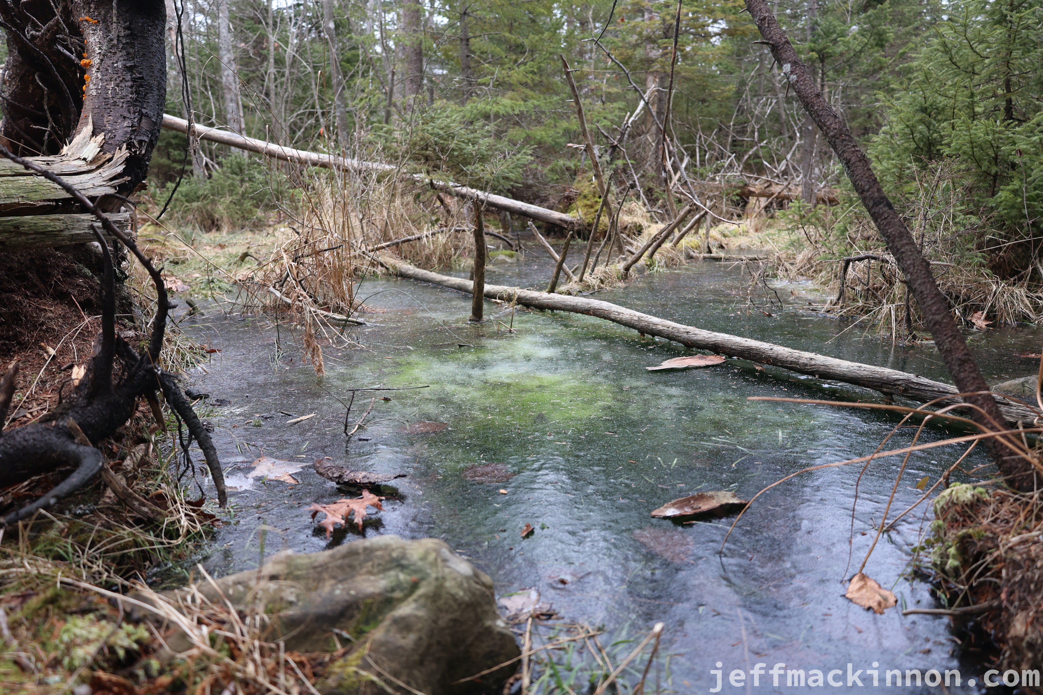 We found a good log by that frozen bog.
