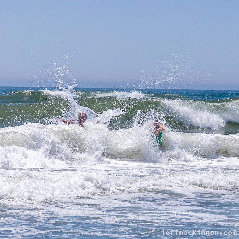 The kids and I stayed put and watched the waves and piled rocks.